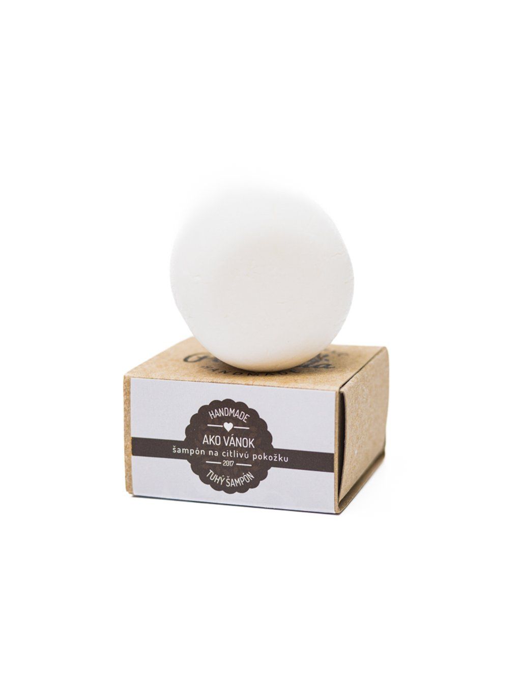 Přírodní tuhý šampon na bázi tenzidů z kokosového oleje bez přidaných barviv a vůní vhodný pro citlivou pokožku